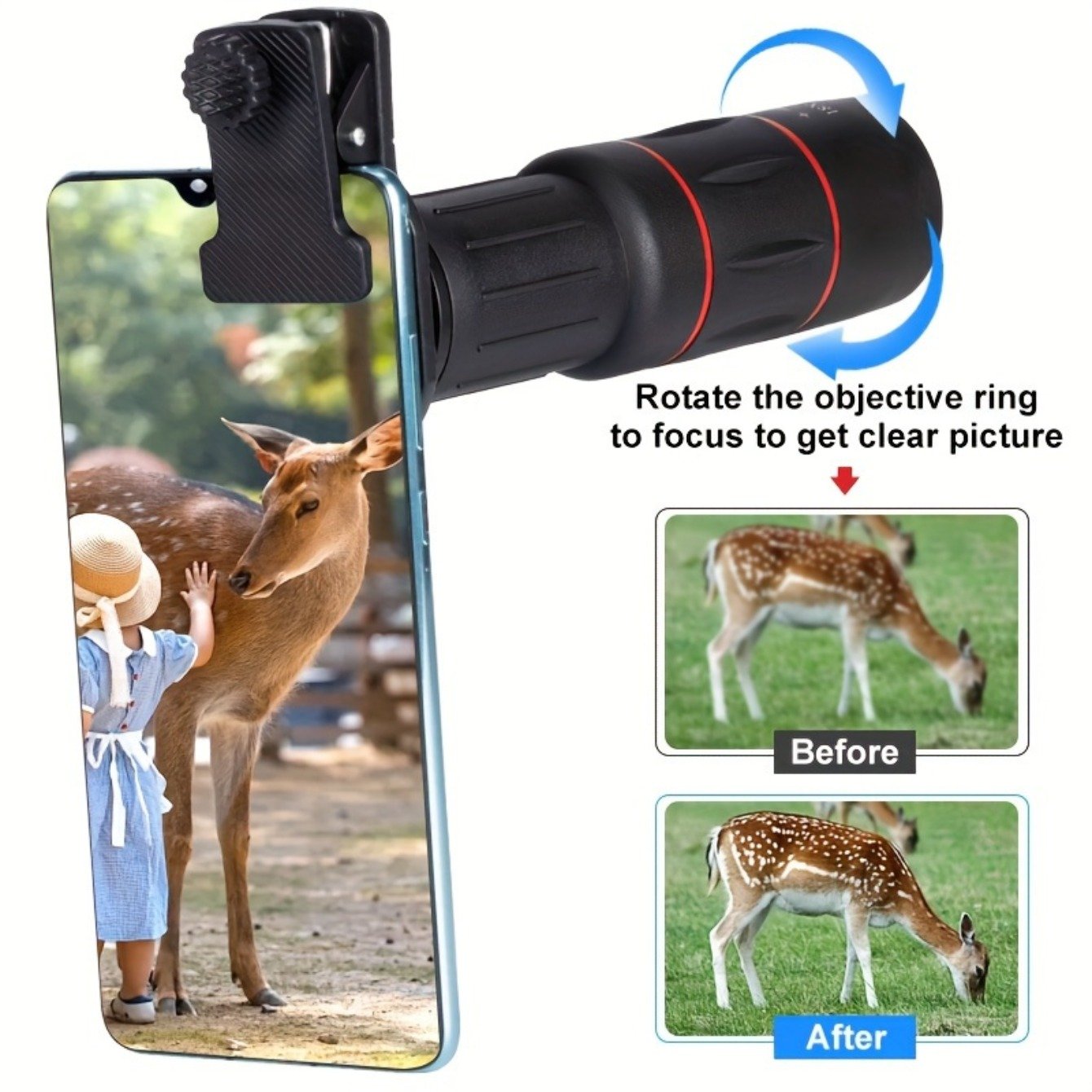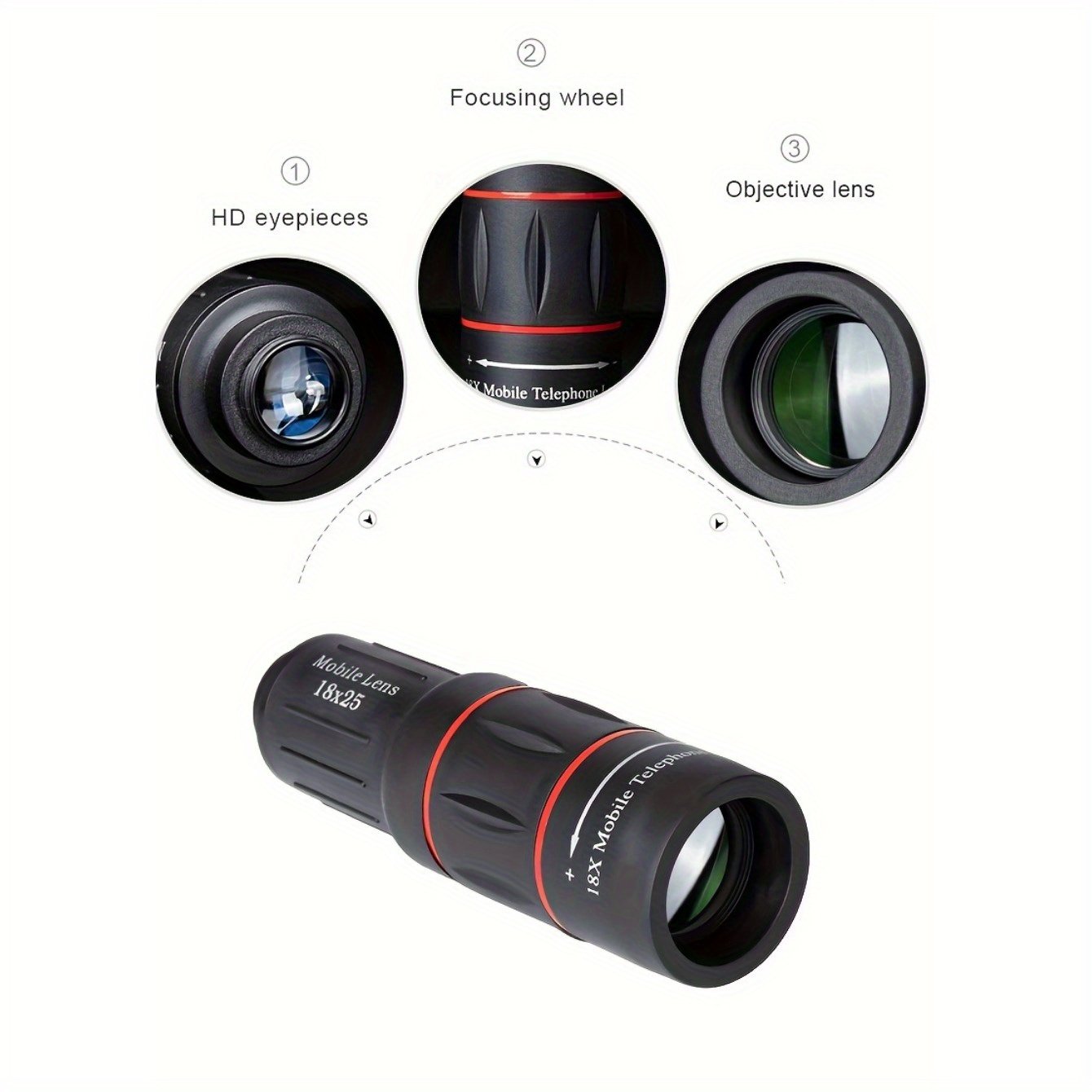 Objectif téléobjectif haute définition 18X universel pour smartphones, matériau en caoutchouc, accessoire d’objectif zoom pour la photographie en plein air, compatible avec pour for iphone, pour for samsung, Xiaomi et plus